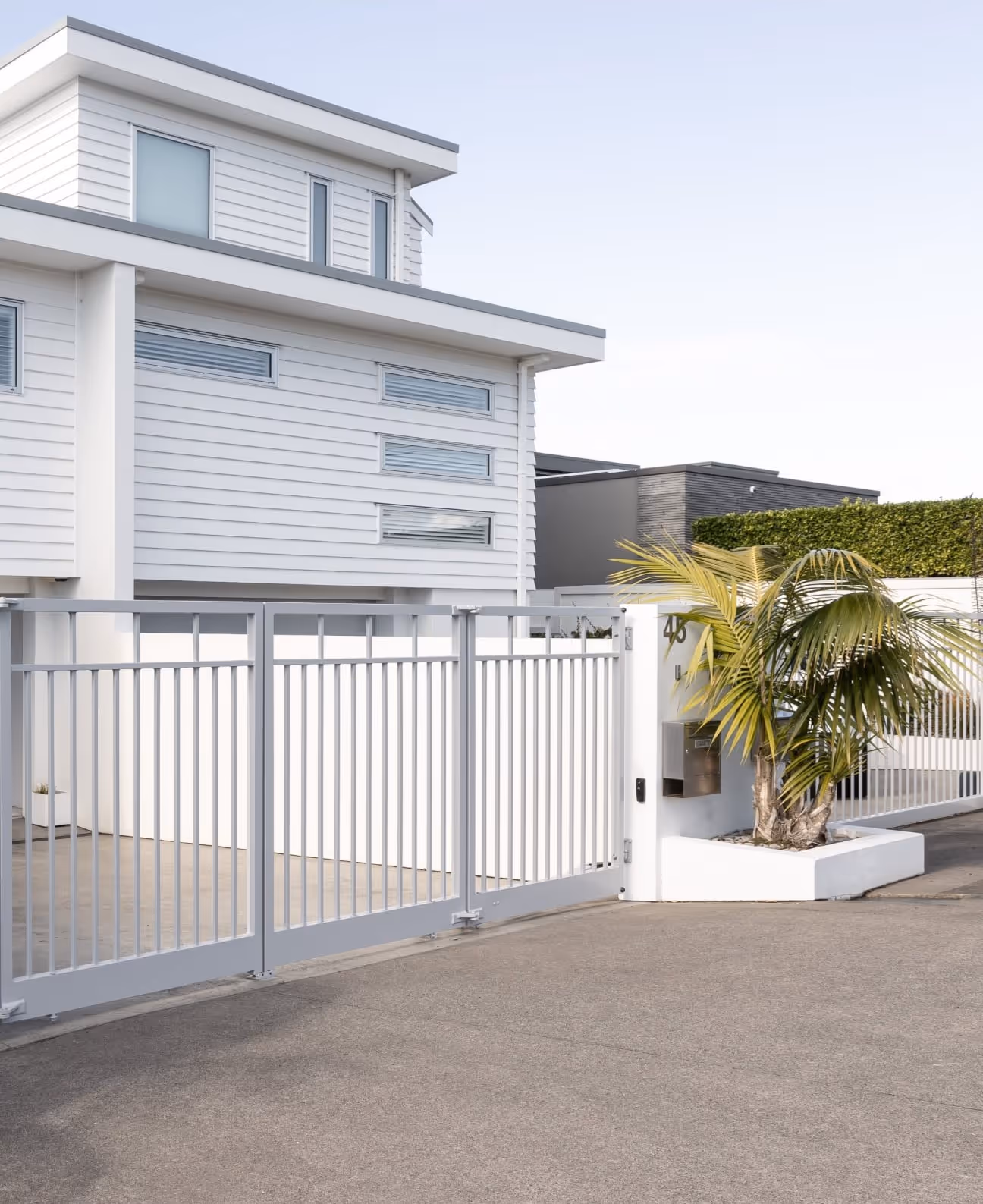 To solve these space restrictions, we proposed two bifold gates on either side of the entry – a solution that swings inwards, with each panel measuring only a quarter of the drive width. For a clean, modern look, we proposed a square (rather than round) vertical, so the gate delivers on aesthetics, as well as function and practicality.