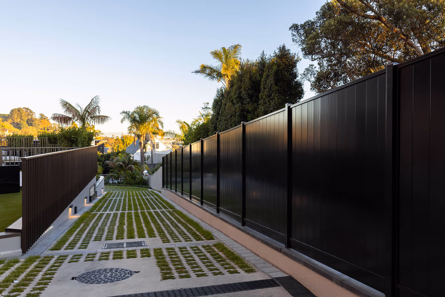 We engaged in detailed discussions with architects Leuschke Group to ensure that the custom fencing for this luxury apartment building would perfectly align with the exteriors. Panel heights and spacings are all carefully lined up with tile joints both horizontally and vertically. All fence and gate elements are powder-coated in a custom colour to match the architectural fins across the building. Boundary fencing was hand-cut on site to follow the ground contour and ensure the top line was visually even. Precision and attention to detail across all the elements, including hidden services and fixings, have resulted in an immaculate finish.